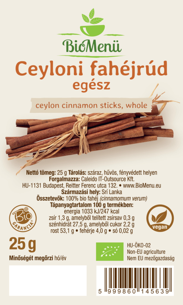 BioMenü Bio-Ceylon-Zimtstangen sind eine der wertvollsten und reinsten Zimtstangen der Welt und stammen aus Sri Lanka, der Urheimat des Zimts. Ihr unverwechselbar süßes, leicht zitrusartiges Aroma und ihre seidige Konsistenz machen sie zu einem ausgezeichneten Gewürz für den Alltag. In seiner natürlichen Form verpackt, frei von Zusatz- und Konservierungsstoffen, behält er seinen vollen Geschmack und Duft.