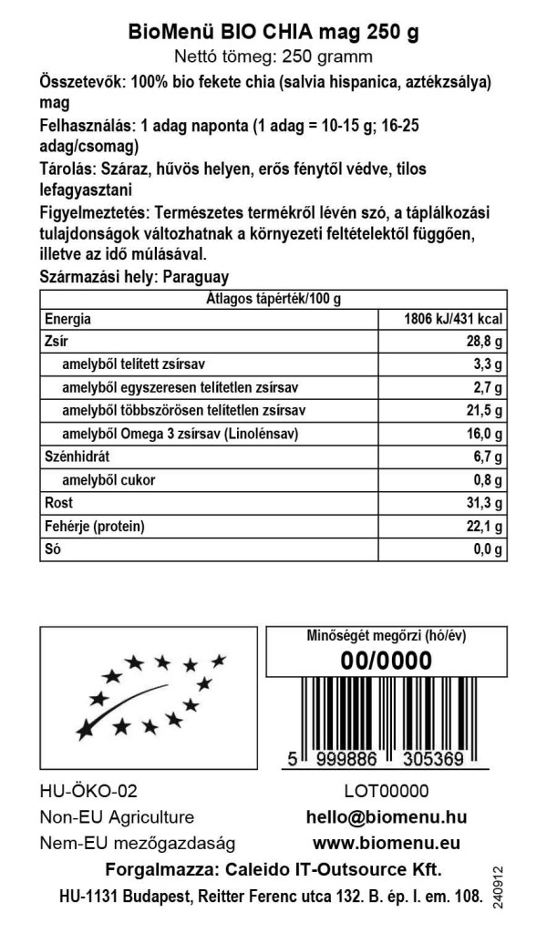 Bio-Chia-Samen erfüllen die Anforderungen der Verordnung (EG) Nr. 834/2007 des Rates (und nachfolgender Änderungen). Es entspricht auch den strengen Standards der Soil Association für den ökologischen Landbau. Während des Herstellungsprozesses werden das Produkt und die Verpackungsmaterialien keinen Pestiziden oder Pestizidrückständen ausgesetzt. Pestizide werden weder vor Ort gelagert noch in den Produktions- oder Lagerbereichen verwendet.