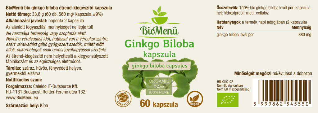 100% Bio-Ginkgo-Biloba-Blattpulver; Kapselhülle: Hydroxypropylmethylcellulose