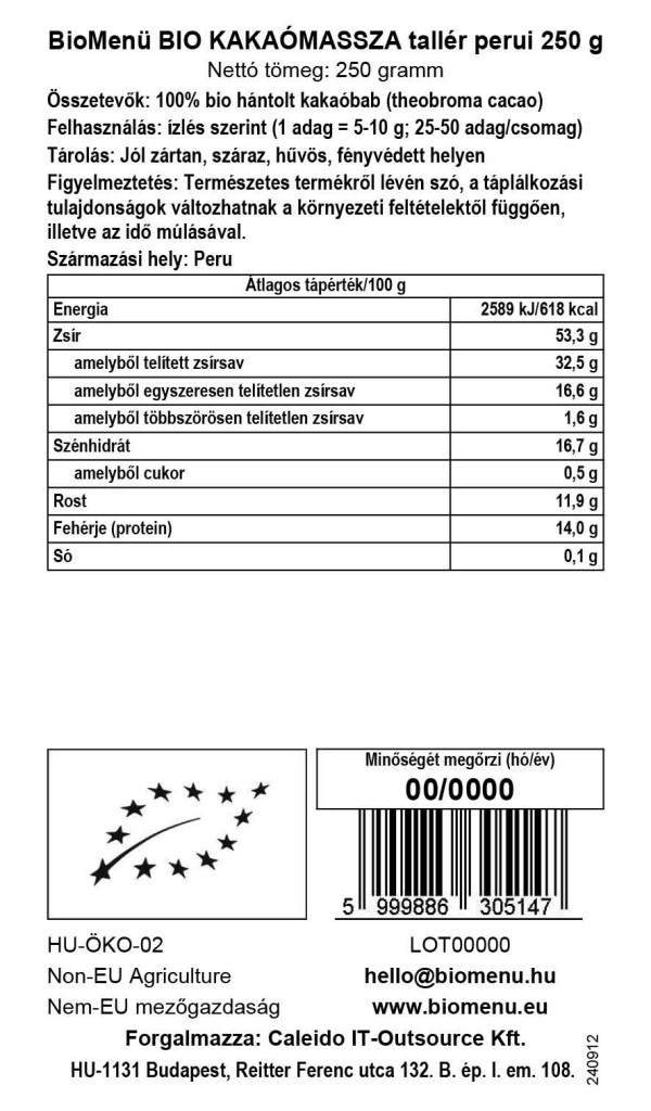 Die drei mit Kakao-Antioxidantien gesättigten Fettarten, die 50% seiner Masse ausmachen, sind für unseren Körper nicht schädlich und erhöhen den Cholesterinspiegel nicht (Ölsäure, Stearinsäure und Palmitinsäure) und enthalten auch mehrere Aminosäuren (Tryptophan und Arginin). Kakaomasse ist nicht nur der wichtigste Rohstoff für die Herstellung von Schokolade, sondern auch eines der beliebtesten Lebensmittel der Welt. Das peruanische BioMenü Cacao Massa Tallér ist ein leckeres Superfood.