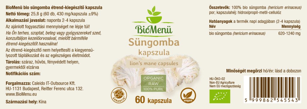 100% Bio-Löwenmähnenpilz-Pulver (Hericium erinaceus); Kapselhülle: Hydroxypropylmethylcellulose