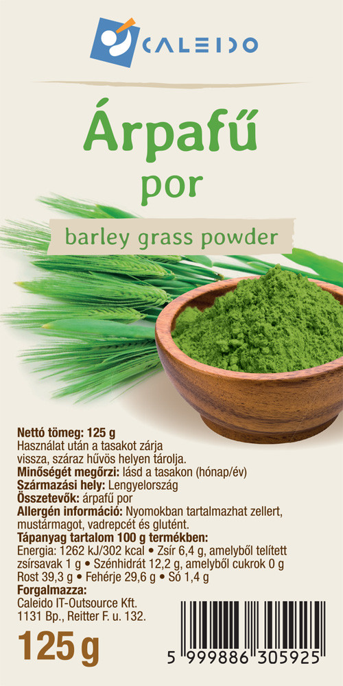 Gerstengras-Pulver. Kann Spuren von Sellerie, Senfkörnern, Wildem Raps und Gluten enthalten.