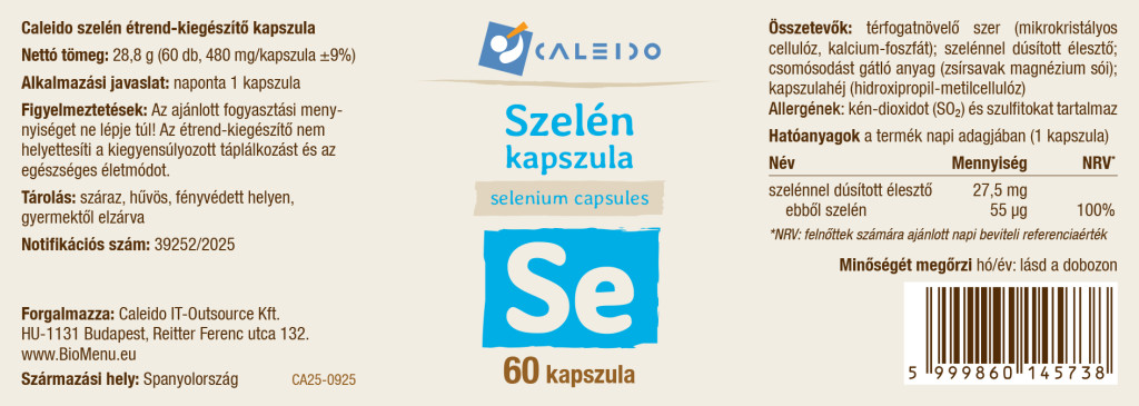 Füllstoff (mikrokristalline Cellulose, Calciumphosphat); mit Selen angereicherte Hefe; Trennmittel (Magnesiumsalze von Speisefettsäuren); Kapselhülle (Hydroxypropylmethylcellulose); Allergene: enthält Schwefeldioxid (SO2) und Sulfite