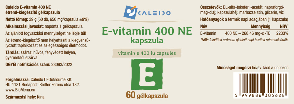 Vitamin E 400 IE – 268,46 mg-α-TE (NRV 2233%)