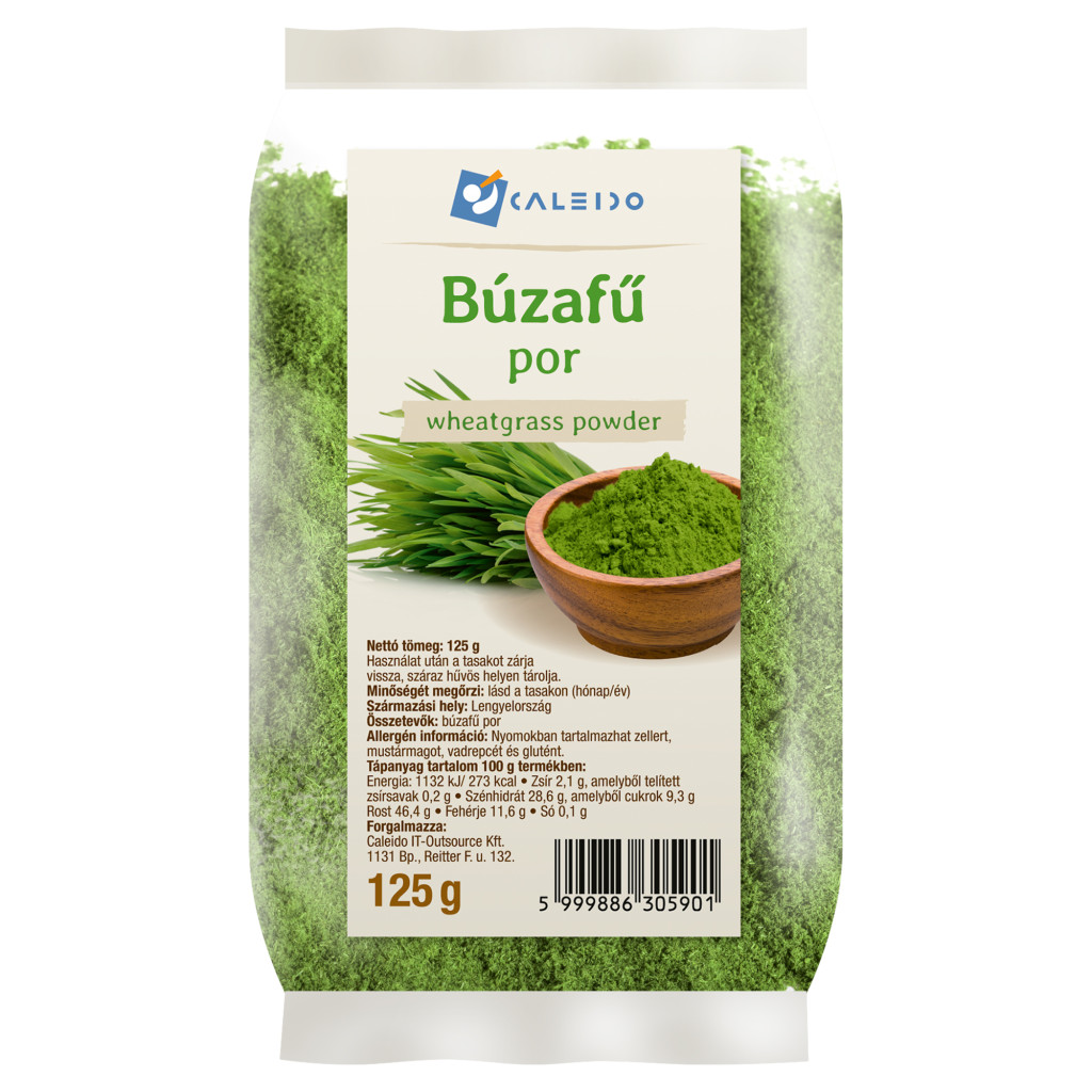 Weizengras-Pulver. Kann Spuren von Sellerie, Senfkörnern, Wildem Raps und Gluten enthalten.